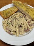 Fettuccini pasta tossed with prosciutto, mushrooms, onions and diced tomatoes in creamy Parmesan cheese sauce.